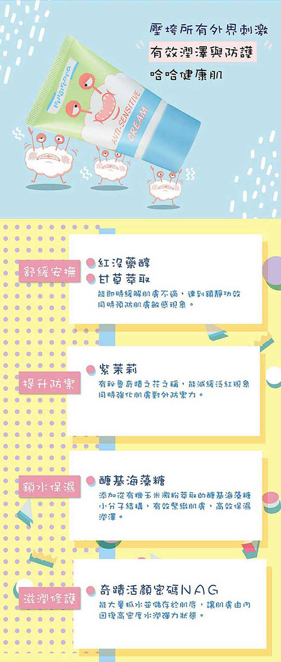 ●天然紅沒藥醇搭配甘草萃取,迅速鎮定安撫泛紅、乾燥等敏感現象